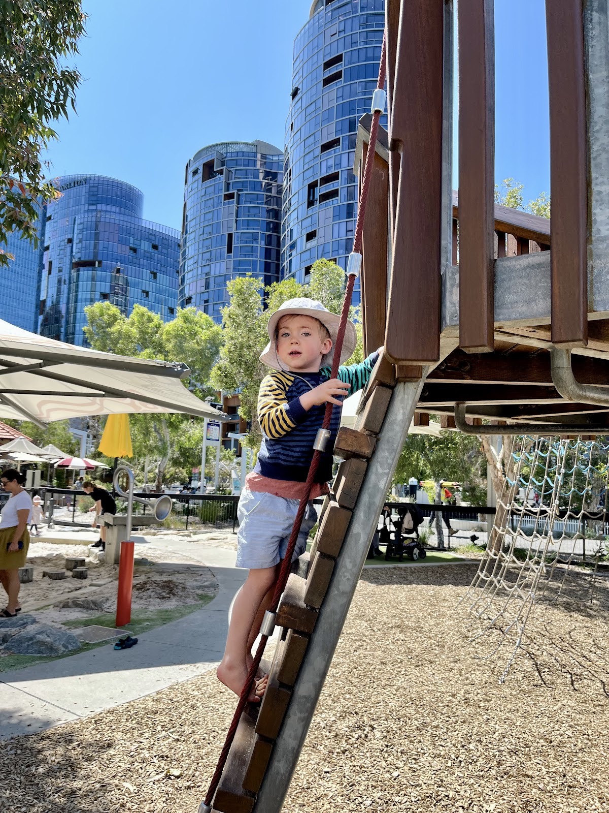 Enjoying the Elizabeth Quay Playground in the city....